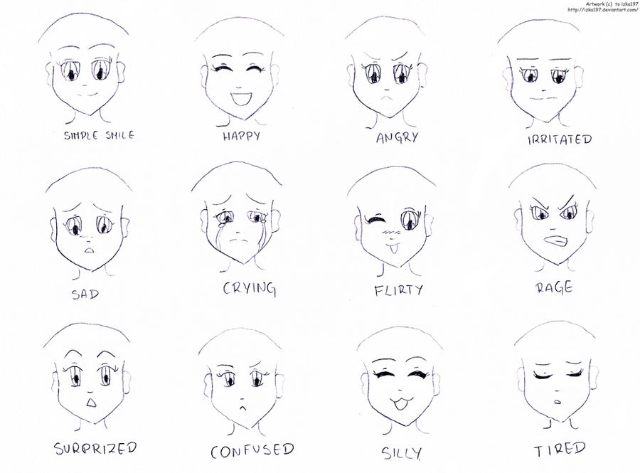 12 Anime Facial Expressions Chart Drawing Tutorial